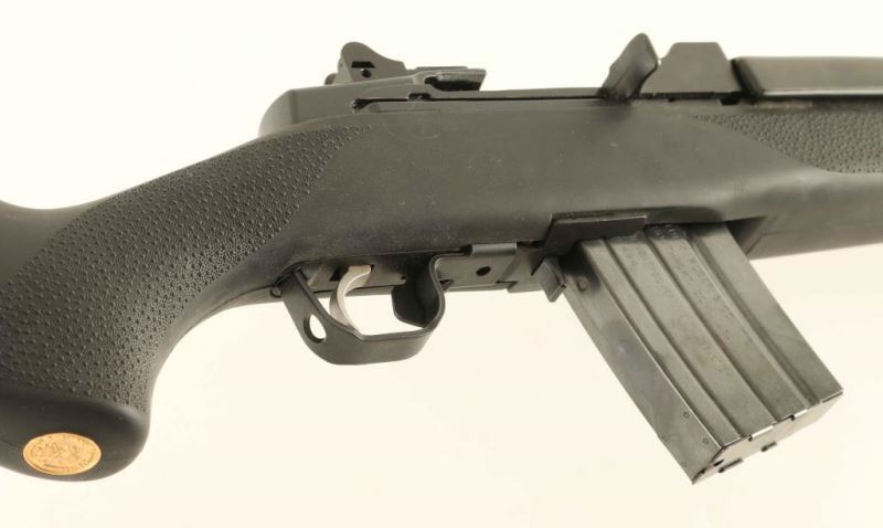 'NRA Special Edition' Para-military style gas operated semi-automatic rifle chambered in .223 Remington. Features a blued finish, 16.12" cold hammer forged barrel, shrouded blade front sight, adjustable ghost ring rear sight, integral scope ring cuts in the investment cast receiver, smooth trigger, manual safety, 20 round factory magazine, black synthetic ventilated handguard and Hogue pebbled black rubber overmolded pistol grip shoulder stock with gold NRA medallion, swivel stud & recoil pad. Includes the manual and three additional 20 round factory magazines. Rifle retains approximately 98% of it's original finish showing only light slide wear on the receiver and bolt. Action is smooth, bore is excellent and the Hogue stock is fine. Condition is NRA Excellent. ***Modern Firearm***