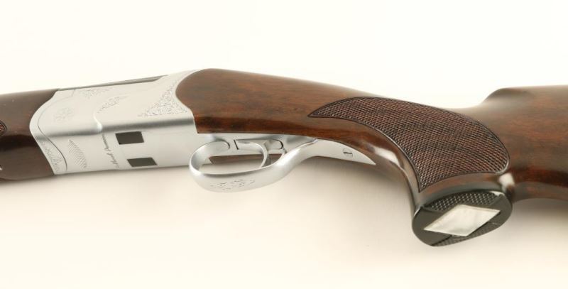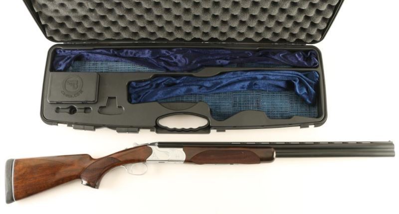 High quality Turkish made over/under double barrel shotgun chambered for 2 3/4" or 3" 20 gauge shells. Imported and marketed by CZ USA of Kansas City, K.S. with import marks on the right side of the barrels near the breech. Features matte blued 26" barrels with ventilated sighting rib, removable skeet/skeet chokes, automatic ejectors, white bead front front sight, silver bead mid-sight, smooth trigger, sliding tang safety/barrel selector, knurled top lever, silver satin chrome finished receiver with light coverage engraving, checkered Turkish walnut forend and pistol grip shoulder stock with faux mother-of-pearl inlayed grip cap, Decelerator recoil pad & 13 3/4" LOP. Includes a CZ hard case with manual, choke tool and full, modified & improved cylinder chokes. Shotgun exhibits approximately 99% of it's original finish showing a single small nick in the sighting rib with no other observed wear.. Action is crisp, bores are pristine and wood stocks are fine. Condition is NRA Excellent. ***Modern Firearm***