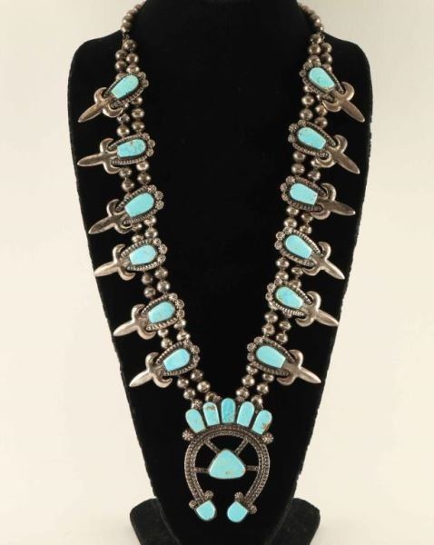 Lot 61 Beautiful Sleeping Beauty Squash Blossom Necklace