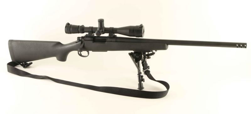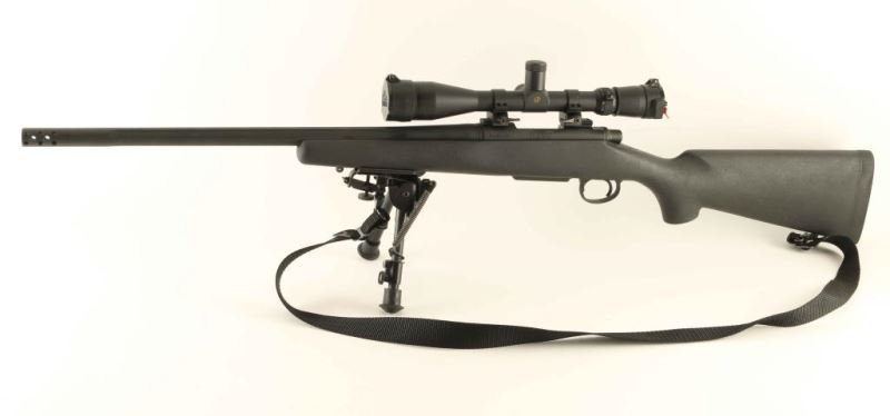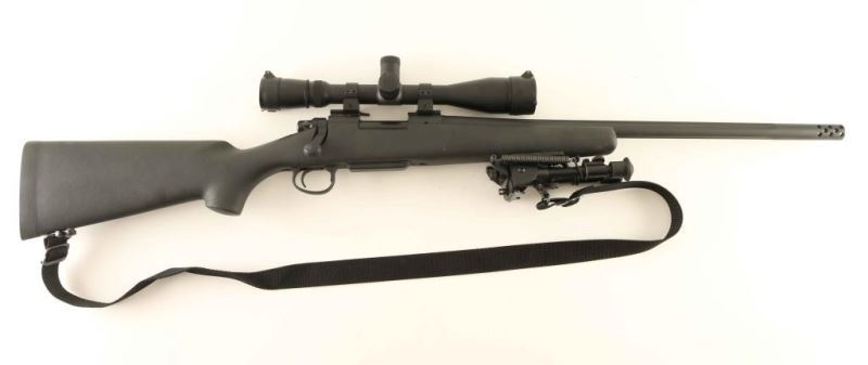 'Light Tactical Rifle' Upgraded bolt action sporting rifle chambered in .308 Winchester. Extensive work has been done to accurized this rifle, the barrel has been set-back, the bolt lugs have been lapped to the receiver, the barrel has been hand lapped, the trigger has been optimized to a 1.7lb pull, and the action has been rebedded in aluminum. Features a black polymer refinish, fluted 20" barrel with flush mounted muzzle break, Leupold Vari-X III 3.5-10x Tactical scope with Butler Creek flip-up caps & Warne quick-detach rings, Harris BR 6-9" bipod, detachable magazine, serrated trigger, manual safety, black nylon sling with quick-detach swivels and a textured black synthetic pistol grip shoulder stock with factory recoil pad. Includes the original factory cardboard box with manual and lock. The rifle exhibits approximately 98% of it's refinish showing a few bright scuffs on the left side of the barrel behind the muzzle break. Action is incredibly smooth, bore is pristine, optics are sharp and the stock is fine. Condition is NRA Excellent in box. ***Modern Firearm***