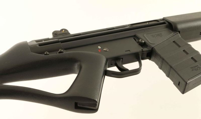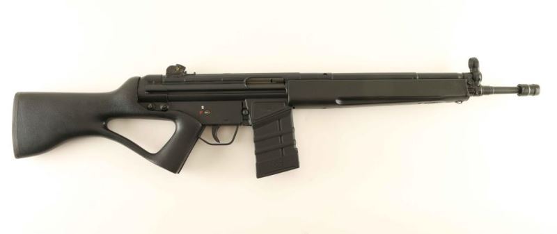 Semi-Automatic sporter variant of the G33 battle rifle chambered in 7.62mm NATO, produced in Greece by EBO. Imported by Springfield Armory of Geneseo, I.L. with import stamp on the left side of the receiver. Features a black finish, 18.25" barrel with permanently affixed muzzle device, hooded post front sight, 4-position drum rear sight, folding charging handle, "FS" marked grip frame with two position selector, push button magazine release, Thermold 20 round magazine, black synthetic forearm and Bell & Carlson thumb-hole pistol grip shoulder stock with rubber recoil pad. Rifle retains approximately 99% of it's original finish showing light handling marks with no major wear observed. Action is strong, bore is pristine, and synthetic stocks are fine. Condition is near NRA Perfect. ***Modern Firearm***