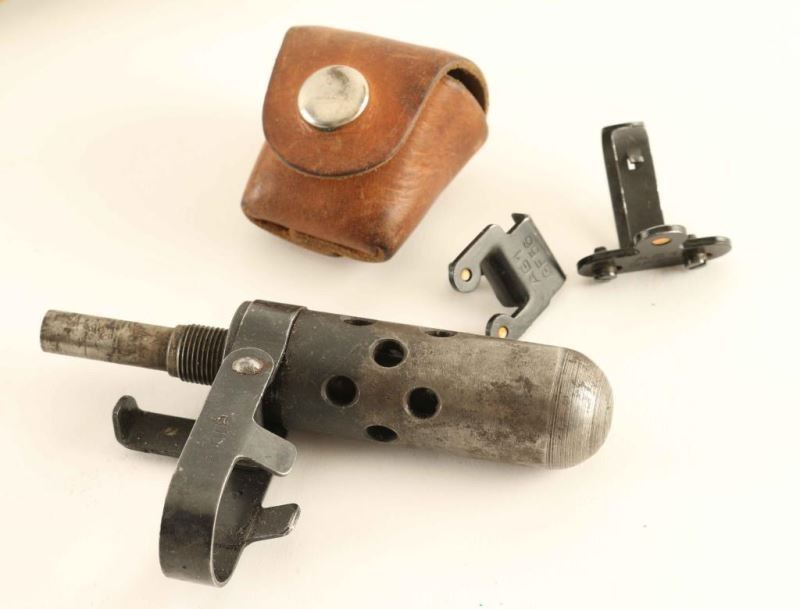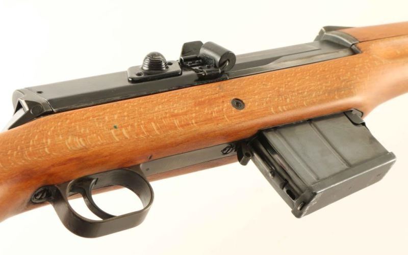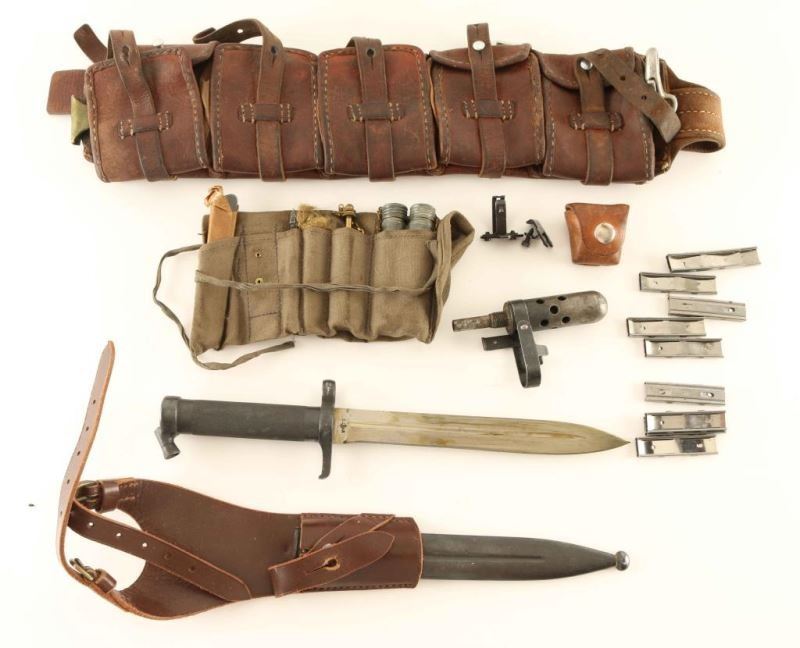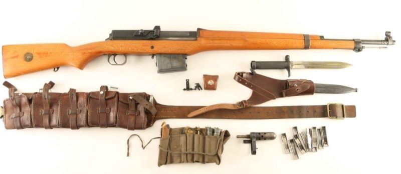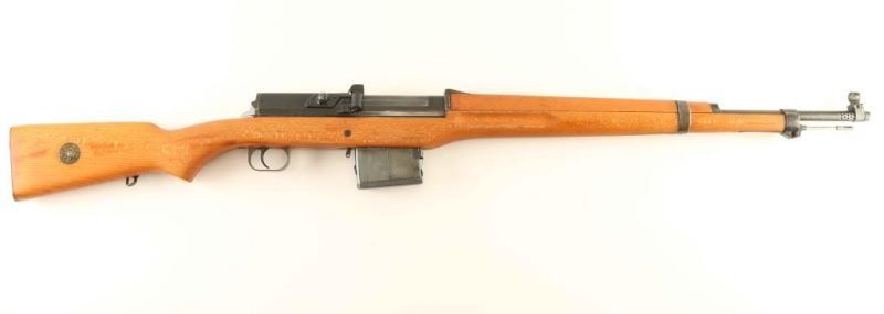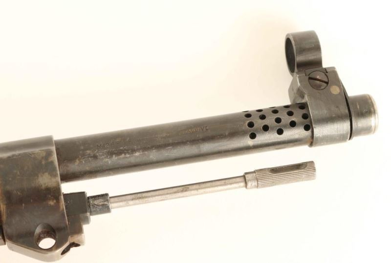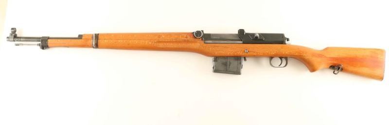 'Ljungman' Swedish military direct gas operated semi-automatic service rifle chambered in 6.5x55mm Swedish, manufactured circa 1943. The AG42 was designed in 1941 and put into production the very next year, with room for improvements nearly all of the 30,000 produced were modified between 1953-1956. The modified rifles such as this one were designated with a "B" suffix on the model designation and on the serial number. The changes include large charging cones on both sides of the top cover, a rubber shell deflector, a new rear sight knob, a stainless steel gas tube, new cleaning rod and new magazine. Imported by C.A.I. of St. Albans, V.T. with import marks on the barrel. It features a blued finish, an internally threaded 24.5" barrel with integral muzzle break, windage adjustable hooded post front sight, elevation adjustable rear sight tuned for spitzer bullets, smooth trigger, manual safety, black painted top cover with stripper clip guide, 10 round detachable magazine, cleaning rod, provisions for a bayonet, smooth blonde wood handguard and pistol grip shoulder stock with sling swivel, brass disc and smooth metal buttplate. The serial numbers match on the receiver, bolt(elecrto-pencil), bolt carrier(electro-pencil), and buttplate. Includes a bayonet with sheath & leather frog, 10 stripper clips, a set of night sights in a small leather pouch, a blank firing muzzle device, an Ag m/42 B maintenance kit and a m1900 leather cartridge belt. Rifle exhibits approximately 60% of it's thinned finish with the majority of the metal surfaces displaying an nice even grey patina. Action is strong, bore is very good++ and the wood stocks are near fine with a repair & a few hairline cracks in the forend between the barrel bands. Condition is near NRA Excellent. ***C&R Firearm***