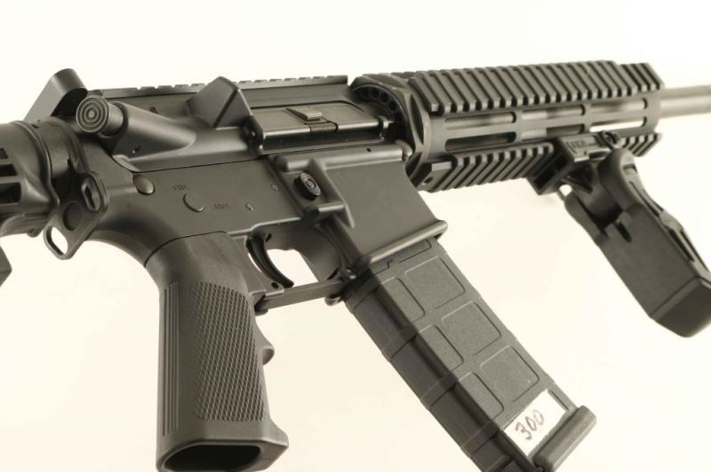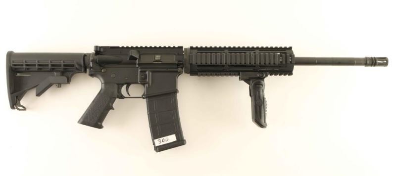 American made semi-automatic AR platform rifle chambered in 300 AAC Blackout. Features a matte black finish, 16.25" barrel with 1:8 twist, A2 style birdcage flash hider, 9" free float quad rail with Ergo covers, folding vertical grip from EMA Tactical, flat-top upper with shell deflector, dust cover & forward assist, mil-spec fire control group, manual safety, push button magazine release, Pmag 30 round magazine, sling swivels, coated AR-15 profile BCG, BCM Gunfighter charging handle, A2 pistol grip and standard six-position collapsible shoulder stock. Rifle exhibits approximately 99% of it's original finish showing very little wear. Action is sound, bore is excellent and synthetic stocks are fine. Condition is NRA Excellent. ***Modern Firearm***