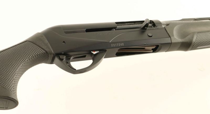 Italian made inertia driven semi-automatic shotgun chambered for 2 3/4" or 3" 20 gauge shells, manufactured circa 2006. Featured a matte black finish, ported 27.5" cryogenically treated Crio barrel with raised ventilation rib, extended Modified Crio choke, 1/2 length tube magazine with Window System shell viewer, red fiber optic front sight, large magnetic pink fiber optic front sight, silver bead rear sight, smooth trigger, cocked indicator/bolt hold open lever, push button safety, serrated charging handle, alloy receiver, checkered black synthetic forend with GripTight coating, and ComforTech pistol grip shoulder stock. Includes a factory hard case with an additional recoil pad, stock shims and improved cylinder, modified & cylinder extender Crio chokes. Shotgun exhibits approximately 93% of it's original finish showing scattered scratches and wear. Action is very smooth, the bore is excellent and the snythetic stocks are fine. Condition is Very Good. ***Modern Firearm***