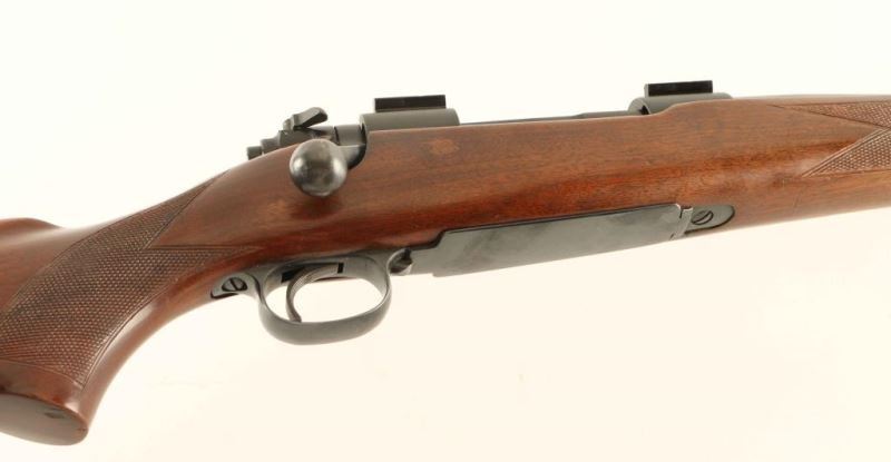 Desirable 'pre-64' bolt action sporting rifle chambered in .220 Swift, manufactured circa 1947. Features a matte blued finish, 26" tapered barrel, ramped & hooded blade front sight with bead top, blank inserted into the rear sight dovetail, installed two-piece scope bases, drilled & tapped receiver for a side mounted sight, serrated trigger, polished bolt with three position safety & notched bolt handle for added clearance, internal box magazine with hinged floorplate, sling swivels and checkered walnut pistol grip shoulder stock with knurled metal floorplate. The rifle exhibits approximately 96% of it's matte finish showing light wear/thinning and the bolt handle appearing to have been touched up with cold bluing. Action is smooth, bore is excellent, markings are crisp, and the wood stock is good to very good. Condition is NRA Very Good. ***C&R Firearm***