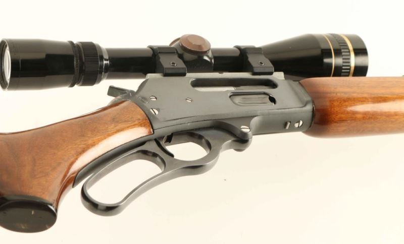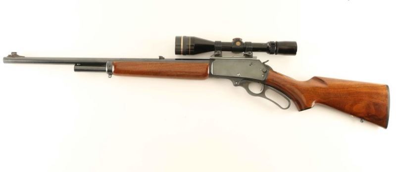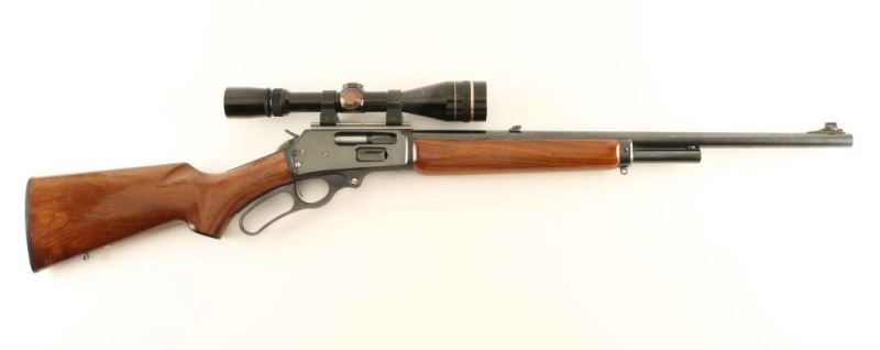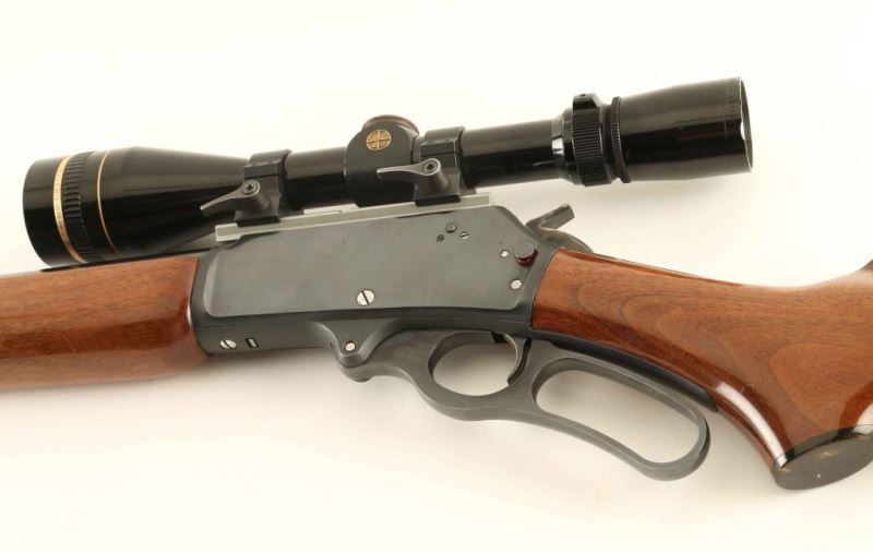 American made lever action repeating rifle chambered in .45-70 Government, manufactured circa 1986. Features a blued finish, "JM" marked 22" barrel, 4 round 2/3 length tube magazine, ramped blade front sight with brass bead, flip-up adjustable rear sight, Leupold Vari-X III 3.5-10x scope with quick detach rings, smooth trigger, serrated hammer spur, cross-bolt safety, curved lever, swivel studs, glossy finished smooth walnut forend with metal cap, and pistol grip shoulder stock with recoil pad base plate. Rifle retains approximately 95% of it's original finish showing light scratches and handling marks. Action is very smooth, bore appears excellent but dirty, optics are sharp and the wood stocks are good to very good with scattered scratches. Condition is NRA Very Good. ***Modern Firearm***