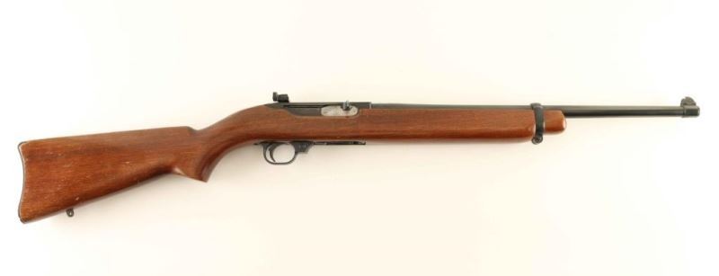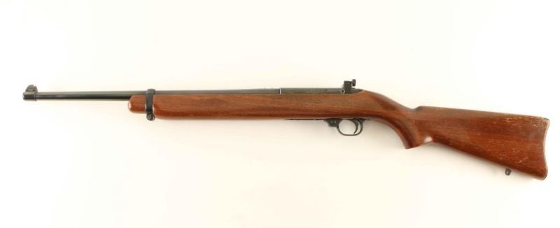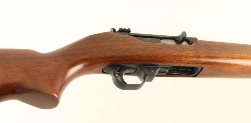Vintage American made tube fed semi-automatic sporting rifle chambered in .44 Magnum, circa 1965. Features a blued finish, 18.5" tapered barrel, dovetailed blade front sight with white insert, factory receiver sight with adjustable aperture diopter, 1/2 length tube magazine, smooth trigger, push button safety, drilled & tapped receiver, and one-piece smooth walnut pistol grip shoulder stock with metal carbine buttplate. The rifle is missing the sling both sling swivels. It retains approximately 95% of it's original finish showing slide wear from the charging handle on the receiver, a few handling marks on the barrel and some edge wear/handling marks on the buttplate. Action is smooth, the bore is excellent, and the wood stock is good with flaking finish on the butt & some scattered imperfections. Condition is NRA Very Good++. ***Modern Firearm***