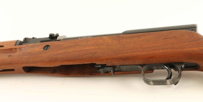 Yugoslavian made semi-automatic SKS pattern rifle chambered in 7.62x39mm, manufactured circa 1967-1989. Imported by Intrac Arms International of Knoxville, T.N. with import marks on the right side of the barrel. Features a blued finish, 20.5" barrel with grenade launcher, hooded adjustable post front sight, tangent rear sight graduated to1,000 meters, flip-up three-dot night sights, grenade launcher sight, folding blade bayonet, smooth trigger, manual safety, no magazine, smooth beech wood handguard, and semi-pistol grip shoulder stock with trapdoor metal buttplate & recoil pad. Serial numbers match on the receiver, bolt carrier, gas tube and stock. Rifle retains approximately 95% of it's original finish showing little wear and small amount of scattered light surface rust on the grenade launcher. Action is smooth, bore is good+ and the wood stocks are very good. Condition is NRA Good to Very Good. ***Modern Firearm***