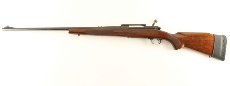 SN: 517573 Desirable 'pre-64' bolt action sporting rifle chambered in .264 Winchester Magnum, manufactured circa 1961. Features a blued 26" tapered barrel, raised blade front sight with bead top, omitted rear sight, matte blued receiver with one-piece Redfield scope base & provisions for a side mounted sight, serrated trigger, polished bolt with three position safety, internal box magazine with hinged floorplate, and checkered walnut pistol grip shoulder stock with swivel studs, high comb & later-style factory buttplate. Includes a slip-on recoil pad. The rifle exhibits approximately 90% of it's original finish showing light edge wear, carry wear on the floorplate, and scattered handling marks which are predominantly on the barrel forward of the stock. Action is smooth, bore is excellent, markings are clear, and the refinished wood stock is good to very good with worn checkering & extended line on the pistol grip. Condition is NRA Very Good. ***C&R Firearm***