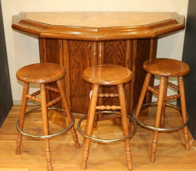 Lot 221 Oak Gamblers Bar with Stools