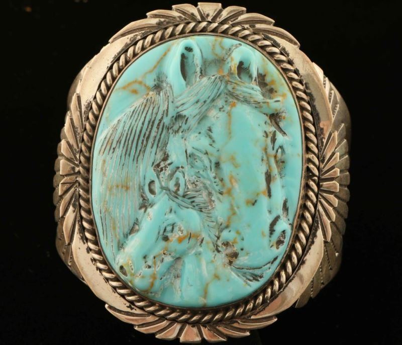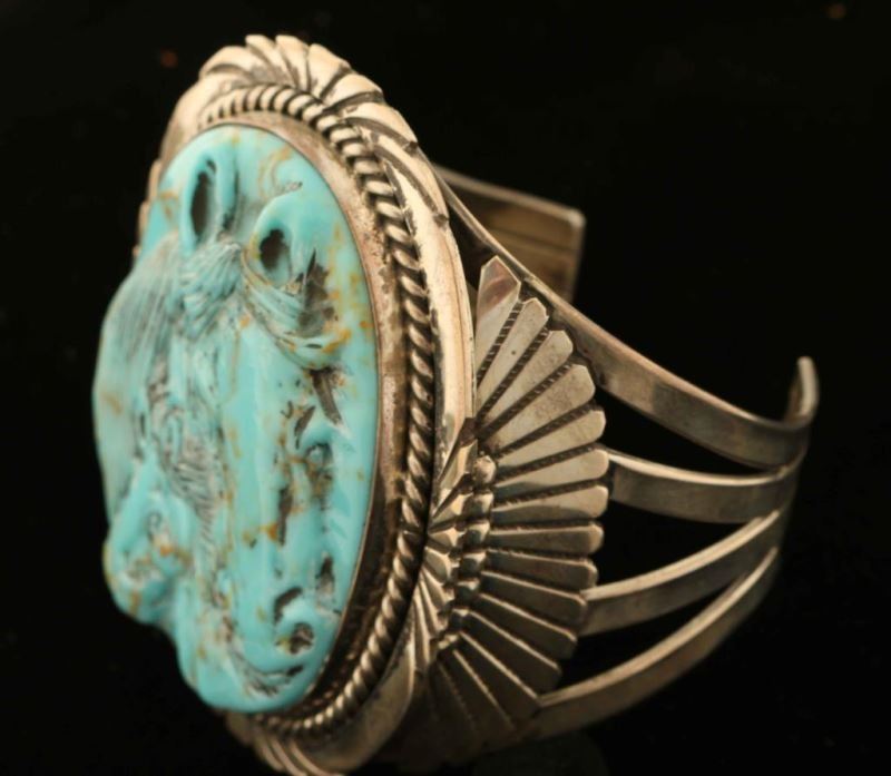 Lot 259 Turquoise & Sterling Horse Cuff