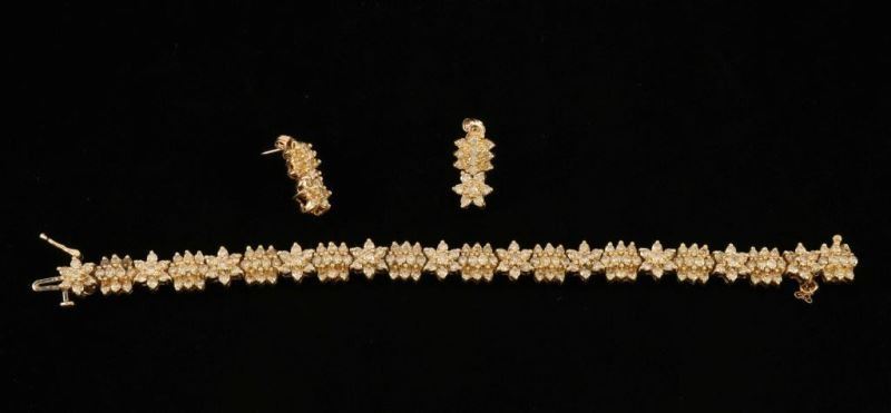 Lot 275 Snowflake Diamond Bracelet & Earrings Set