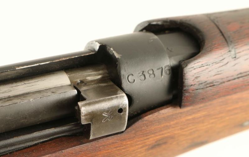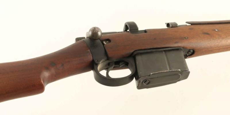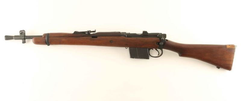 Modified Indian military bolt action service rifle make to resemble a 'Jungle Carbine', chambered in 7.62x51mm NATO and manufactured circa 1965. Imported by Navy Arms of Ridgefield, N.J. with import stamp on the barrel. Features a matte black finish, 19" barrel, flash suppressor with bayonet lug & shrouded blade front sight, tangent rear sight graduated to 800 meters, serrated trigger, manual safety, stripper clip guide, detachable 10 round magazine, metal trapdoor buttplate and four-piece smooth wood stocks. Rifle exhibits approximately 85% of it's black finish scattered wear/losses. Action is smooth, bore is excellent and the wood stocks are good+ with a few repairs & a crack in the handguard behind the rear sight. Condition is NRA Good to Very Good as modified. ***C&R Firearm***