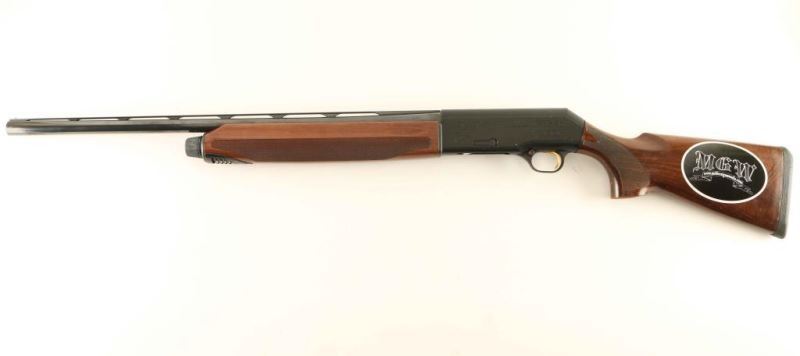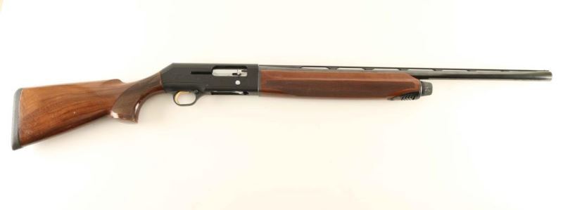 'Silver Mallard' Italian made gas operated semi-automatic shotgun chambered for 2 3/4" & 3" 12 gauge shells, manufactured circa 1995. Features a blued 26" vent ribbed barrel with removable improved cylinder choke, 1/2 length tube magazine, silver bead front sight, smooth gold trigger, push button safety, serrated charging handle, bolt hold open lever, black finished alloy receiver, checkered walnut forend and pistol grip shoulder stock with factory recoil pad, a large Midwest Gun Works sticker on the left side of the butt & 13 3/4" LOP. Includes a factory hard case with documents. Shotgun exhibits approximately 95% of it's original finish showing scattered handling marks/scratches and light edge wear. Action is smooth, bore is excellent and the wood stocks are good with blemishes & a sticker on the buttstock. Condition is NRA Very Good. ***Modern Firearm***