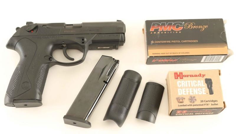 Italian made double action semi-automatic pistol chambered in .40 Smith & Wesson, circa 2013. Features a satin black finish, 4" barrel, dovetailed three-dot sights, front & rear slide serrations, ambidextrous thumb safety/decocker, smooth trigger, skeletonized hammer with serrated round spur, reversible push button magazine release, factory 14 round magazine, and black polymer frame with integral accessory rail & interchangeable backstraps. Includes the original factory hard case with matching sleeve, manual, cleaning tools, lock, speed loader, spare magazine and two additional backstraps. Also includes 20 rounds of Hornady Critical Defense 165 grain FTX & 50 rounds of PMC Bronze 180 grain FMJ FP ammo. Pistol exhibits little to no visible wear. Action is smooth, bore is pristine and polymer is fine. Condition is like NRA Perfect. ***Modern Firearm***