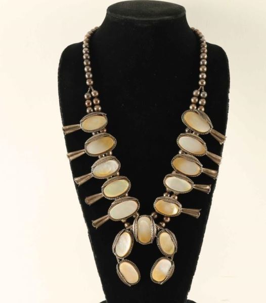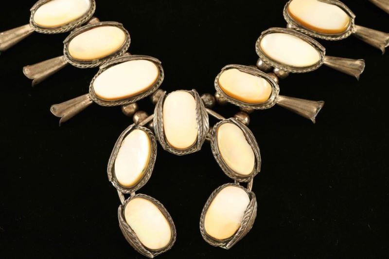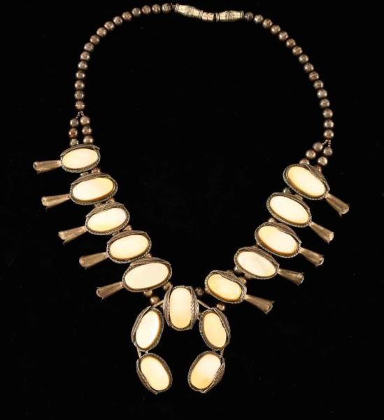 Lot 300 Unusual Mother of Pearl Squash Blossom Necklace