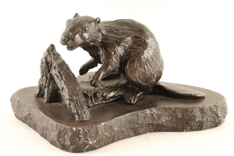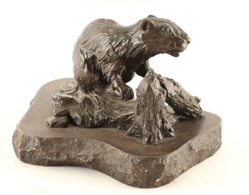 by Lowell Davis depicting a beaver, signed in bronze, measures 9 1/2"X4.