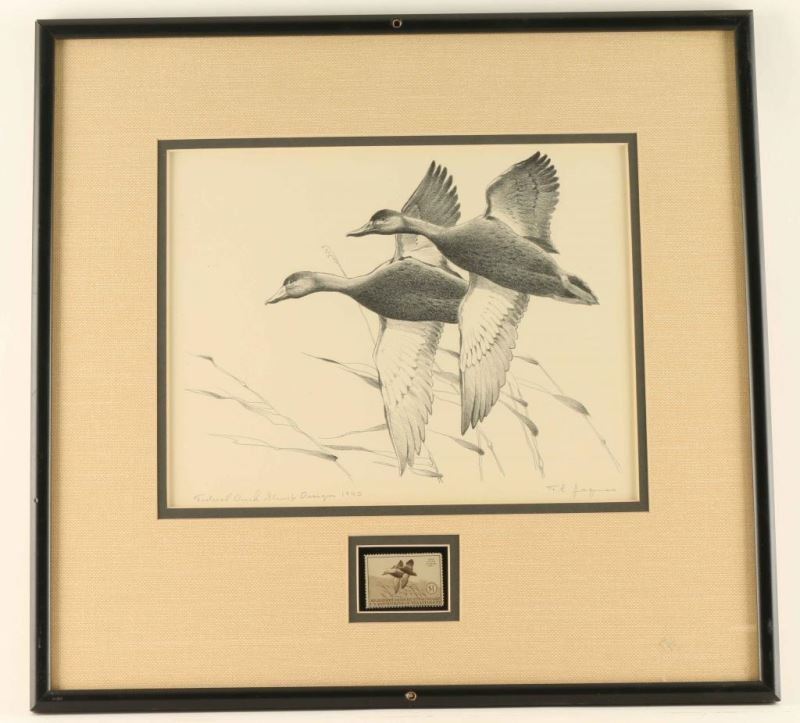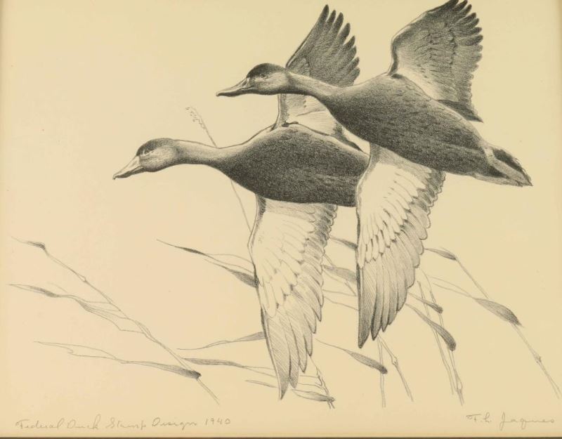 by F.L. Jaques, Federal Duck Stamp Design 1940, includes stamp & print, hand signed in pencil, image size is 12"x9", double mat and frame.