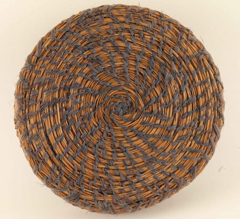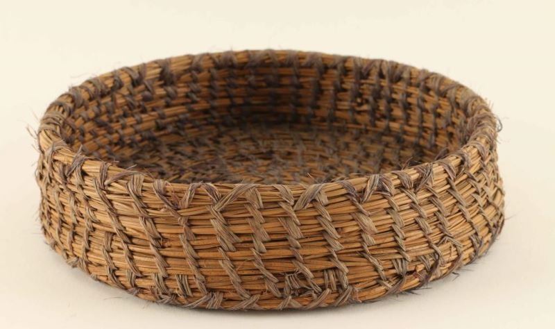 Loosely coiled shallow basket. Measures 6 1/4" x 1 1/2".
