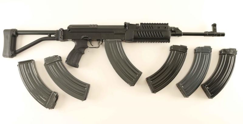 Sporterized semi-automatic variant of the VZ58 assault rifle, chambered in 7.62x39mm & manufactured in the Czech Republic. Imported by TGI of Knoxville, Tennessee with import marks on the left side of the receiver. Features a glossy black finish, 16.25" barrel, shrouded adjustable post front sight, tangent rear sight graduated to 800 meters, no bayonet lug, milled receiver, smooth trigger, manual safety, 30 round magazine, FAB Defense handguard, forend & pistol grip, and an Ace stock adapter with a right-side-folding tubular stock & rubber recoil pad. Includes five spare 30 round magazines. Rifle exhibits approximately 98% of it's original finish showing few handling marks and minor slide wear on the bolt. Action is smooth, bore is excellent and the stocks are fine. Condition is NRA Excellent. ***Modern Firearm***