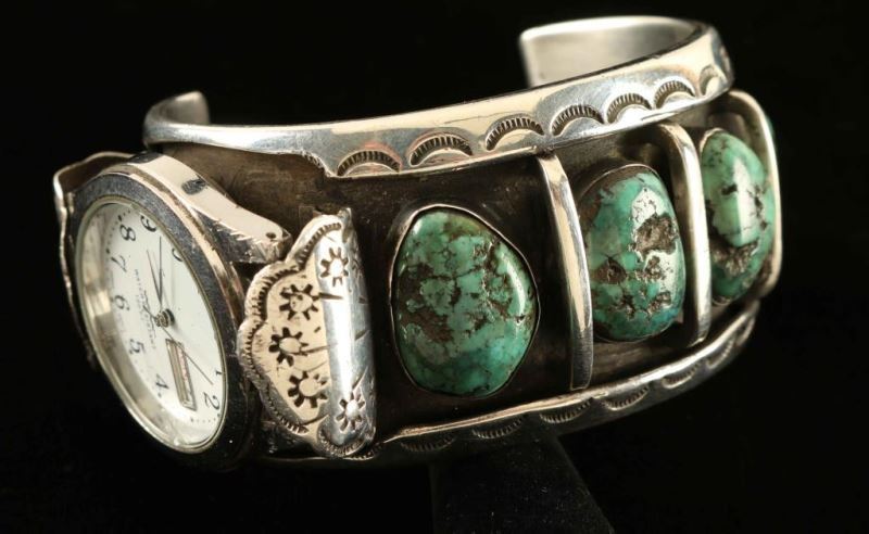 Lot 345a Vintage Silver & Turquoise Watch Cuff