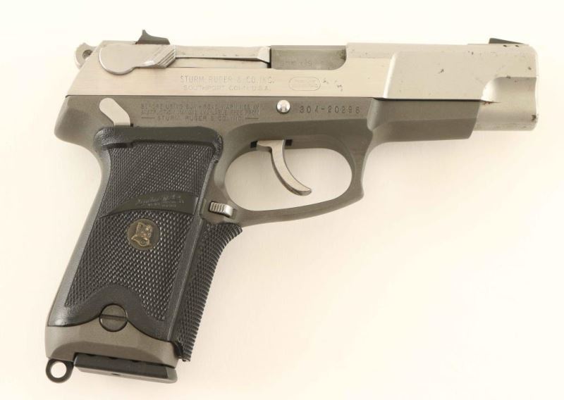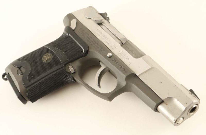 Full size double-action semi-automatic pistol chambered in 9x19mm. Features a satin finished stainless steel slide, 4.5" barrel, three-dot sights, ambidextrous safety/decocker, smooth trigger, serrated hammer spur, lanyard loop, ambidextrous magazine release, 10 round magazine, grey finished alloy frame, and Pachmayr one-piece checkered black rubber wrap-around grip. Pistol exhibits only light wear with some scattered dark surface rust on the slide. Action is smooth, bore is excellent and rubber grips are very good. Condition is NRA Good. ***Modern Firearm***