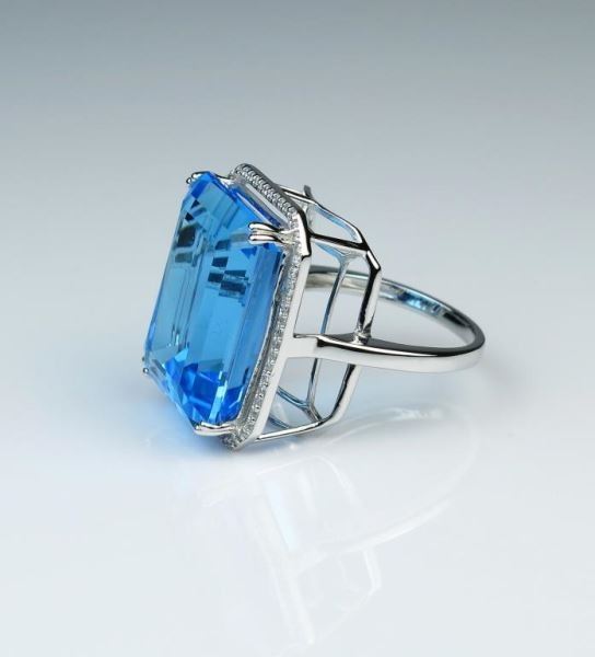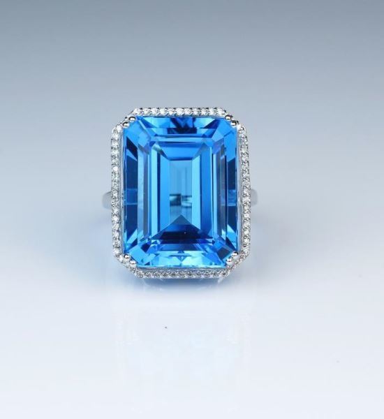Lot 370 Magnificent Emerald Cut Swiss Blue Topaz & Diamond