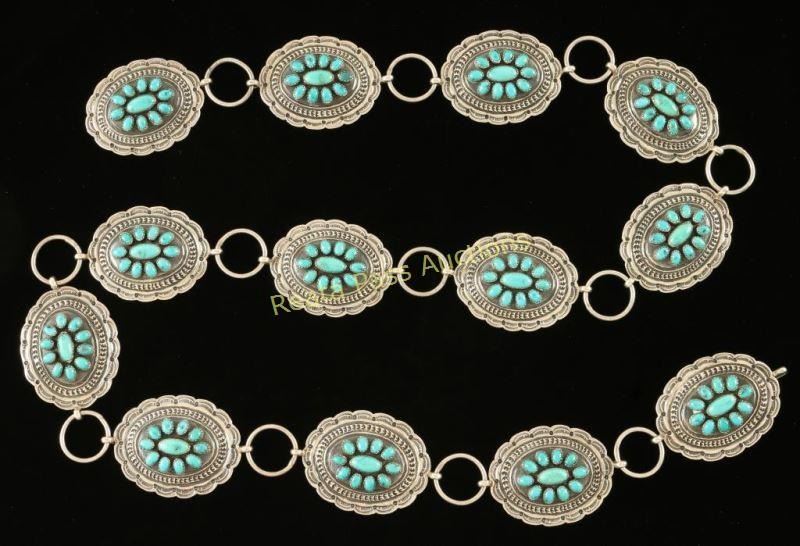 Lot 375 Sterling & Turquoise Concho Belt