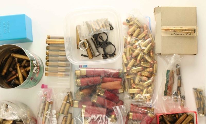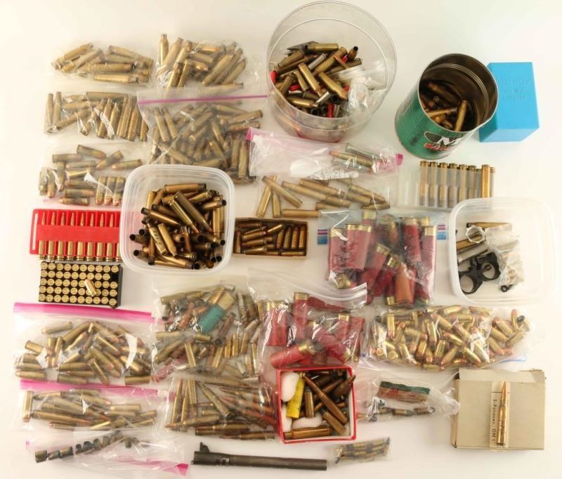 Including; 44-40 Win reloads-20+ Rds, 243 Win-10Rds, 44-40 brass, 45 Colt reloads, 6mm Rem reloads 10 Rds, scope rings, Assorted shotgun shells, cleaning brushes, and assorted brass. See photo.