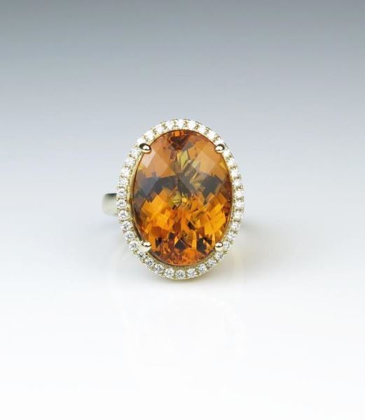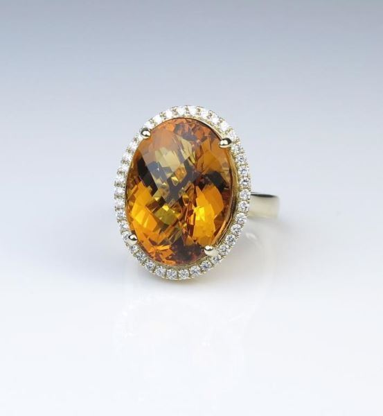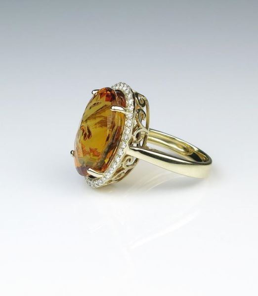 Lot 427 Beautiful Checkerboard Cut Citrine & Diamond Ring