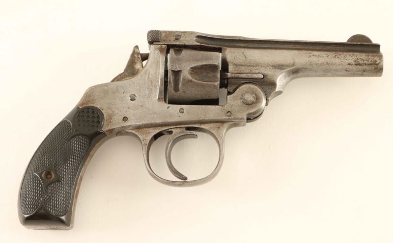 Antique small frame double action revolver chambered in .32 caliber centerfire, circa pre-1896. Features a blued finish, 3" ribbed barrel with Norwich, Conn. address, round blade front sight, 'v' notched rear sight, fluted five shot cylinder, smooth crescent trigger, bobbed hammer and two-piece fancy checkered black hard rubber grips. Revolver is primarily in-the-white with traces of bluing present on the barrel and triggerguard. Action is non-functioning, bore is poor and the grips are very good. Condition is NRA Fair. ***Antique Firearm***