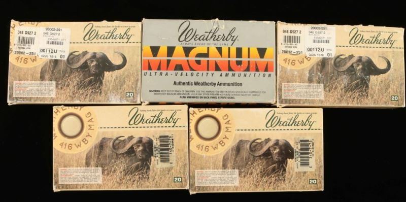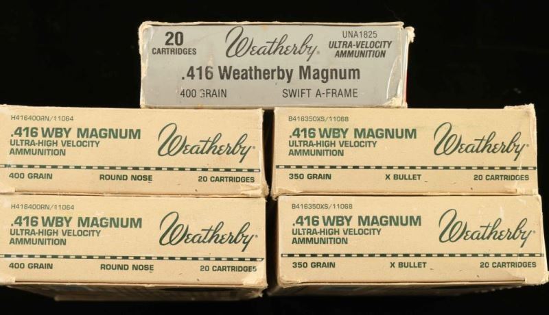 3 boxes of 400Gr, 48 Rds and 2 boxes of 350Gr, 40 Rds. Some boxes contain spent cases.
