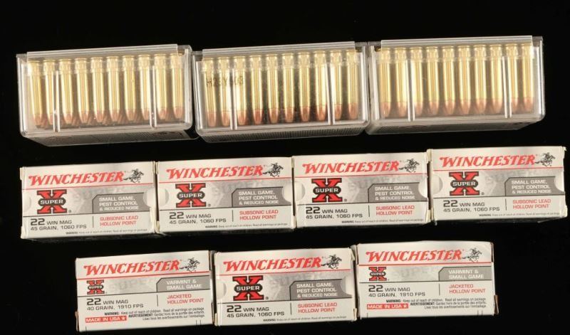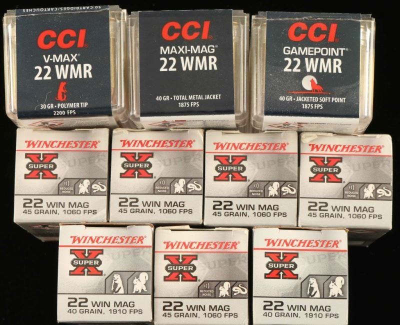 150rds 3 boxes of CCI .22WMR and 350rds 7 boxes of 22WIN MAG.
