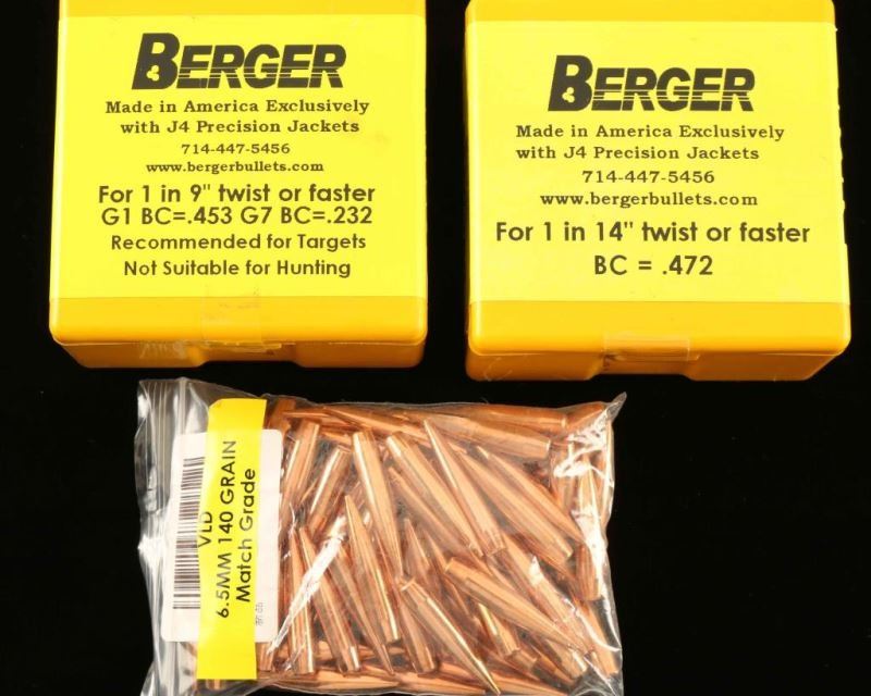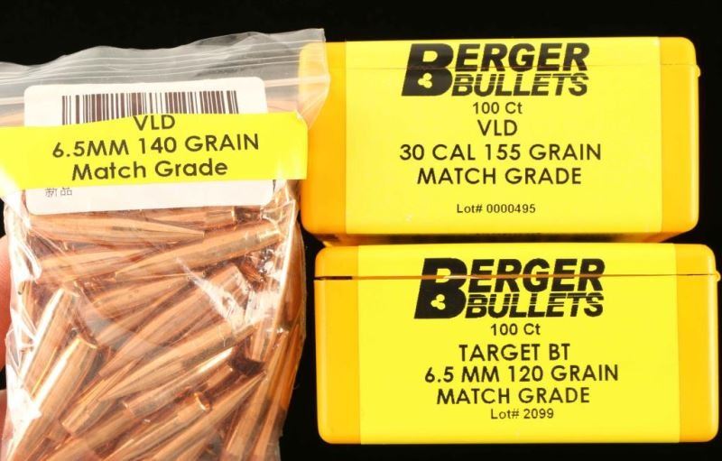 Including 6.5mm 120Gr, 30 Cal 155Gr, both in plastic containers and one bag of 6.5mm 140Gr.