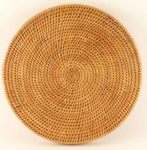 Single rod coiled tray basket, natural, no design. Measures 12 1/4"x1". Good condition.