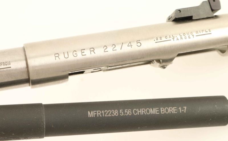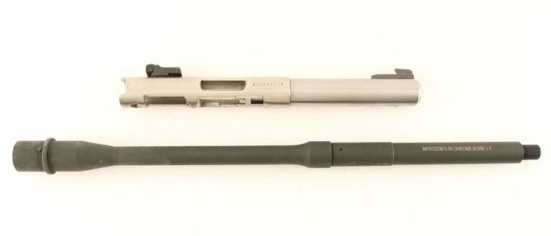 AR-15 barrel 5.56 16" length still in package from Brownell's and a Ruger 22/45 .22 LR barreled receiver.