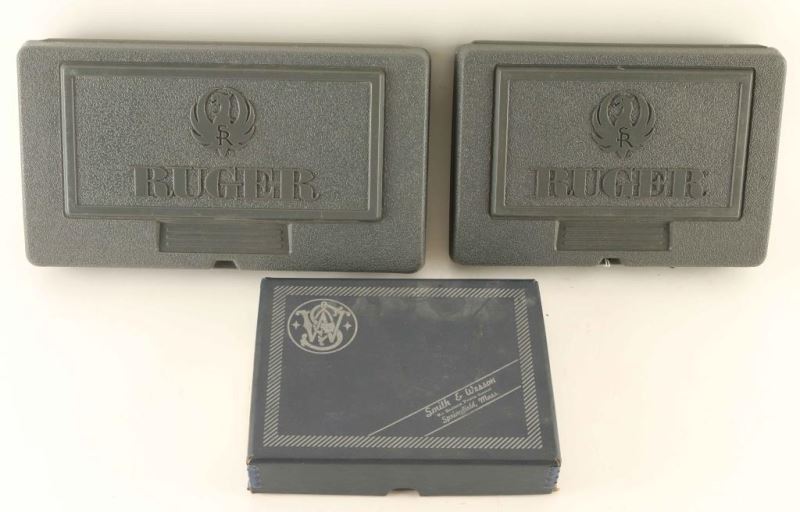 S&W 9mm Mdl 59 with original receipt, Ruger P89DC with manual, and Ruger Vacquero and Bisley Vacquero with manual, lock and spent shell.