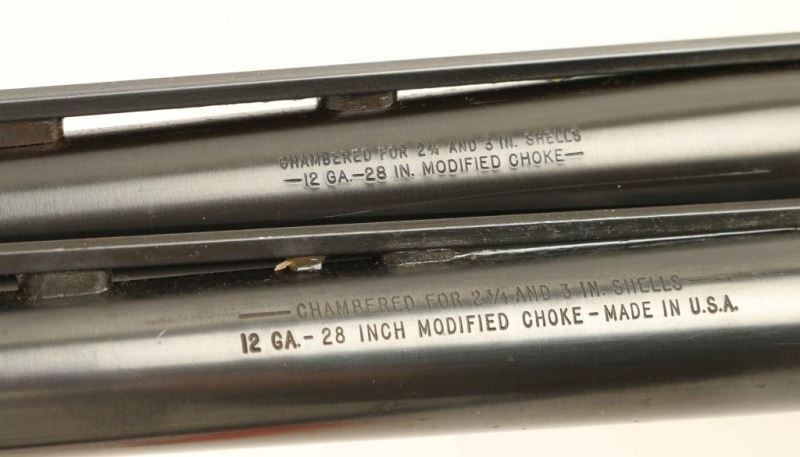 Both are 28" 12 Ga barrels with modified fixed chokes. Chambered for 2 3/4"-3" shells. Vent rib on both.