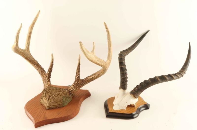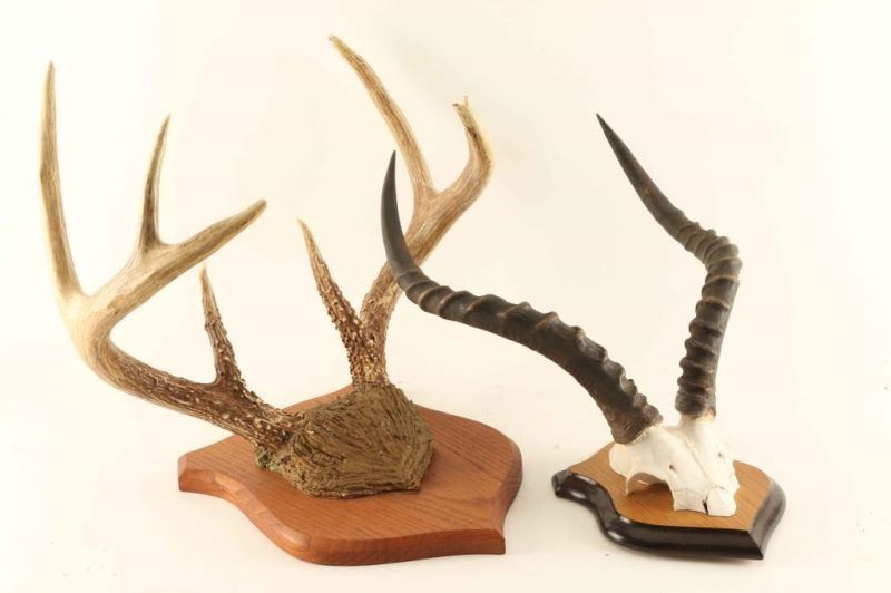 mounted on wood plaques including a deer and one African set.