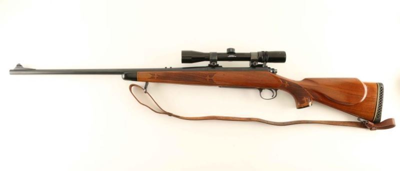 'BDL' Vintage bolt action sporting rifle chambered in 7mm Remington Magnum, manufactured circa 1962-1970. Features a blued finished 24" stainless steel barrel with 1965 date code, ramped blade front sight with brass bead, removed rear sight, Bushnell Sharpshooter 3-9x scope, adjustable serrated trigger, knurled bolt knob, manual safety on the right side of the receiver, internal box magazine with hinged floorplate, smooth brown leather sling with quick detach swivels and press checkered Monte Carlo style shoulder stock with black forend/pistol grip caps & factory recoil pad. Rifle exhibits approximately 90% of it's original finish showing oxidation/losses on the receiver and scattered wear on the barrel. Action is smooth, the bore appears excellent but dirty, the optics are sharp and the wood stock is very good with scattered blemishes. Condition is NRA Very Good. ***Modern Firearm***