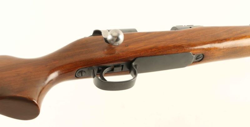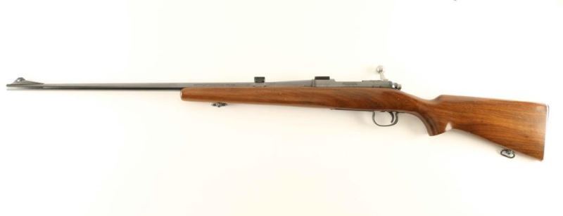Vintage American made bolt action sporting rifle chambered in .222 Remington, manufactured circa 1953. Features a blued finish, 26" tapered barrel, ramped blade front sight with silver bead, installed scope blocks, adjustable serrated trigger, polished bolt & bolt handle, manual safety on the right side of the receiver, internal box magazine, drilled & tapped short-action receiver, stamped metal trigger guard/floor plate, quick-detach sling swivels and smooth walnut pistol grip shoulder stock with ill-fitted serrated metal buttplate. Rifle exhibits approximately 99% of what appears to be it's original finish showing little wear and a faint serial number. Action is sound, the bore is excellent and the wood stock is near fine with minor blemishes. Condition is NRA Excellent. ***C&R Firearm***
