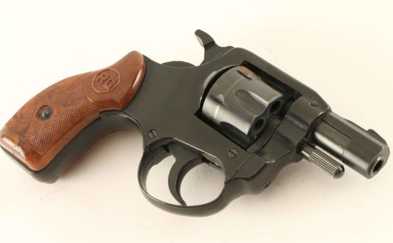 Snub-nosed small frame double action revolver chambered in .22 Long Rifle. Made in America with German & American parts. Features a blued/black finish, 1.75" barrel, fixed patridge font sight, square channel cut rear sight, fluted six-shot swing out cylinder, smooth trigger, wide serrated hammer spur, alloy frame and two-piece checkered faux wood plastic grips with RG decor. Includes a factory cardboard box. Revolver retains approximately 92% of it's original finish showing little wear with some scattered light rust on the cylinder. Action is strong with very good lock-up, bore is excellent and plastic grips are fine. Condition is NRA good. ***Modern Firearm***