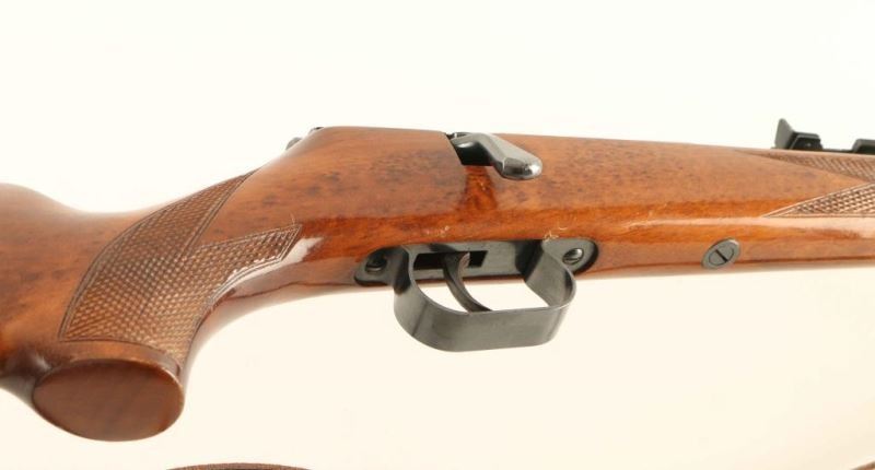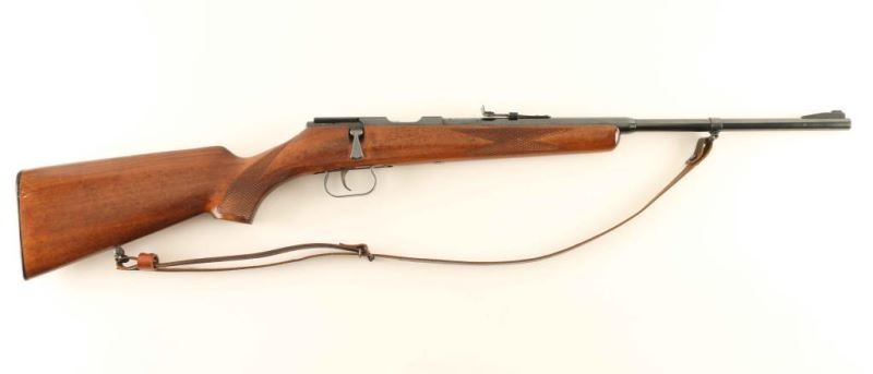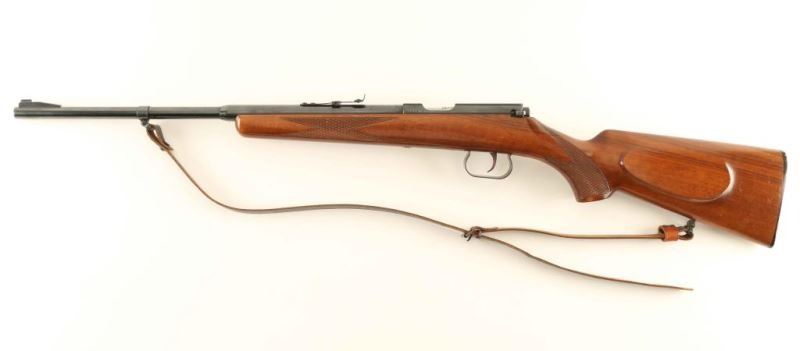 German made bolt action single parlor rifle chambered for 4mm ammunition. Features a blued finish, 19" barrel, ramped blade front sight with bead top, adjustable rear sporting sight, scope rail cuts in the receiver, serrated trigger, polished bolt with butter knife bolt handle, manual safety, thin brown leather sling and checkered pistol grip shoulder stock with right-handed cheek rest & serrated black buttplate. Rifle exhibits approximately 95% of it's original finish showing light wear. Action is sound, bore appears excellent and the wood stock is near fine with minimal blemishes. Condition is NRA Excellent. ***Modern Firearm***