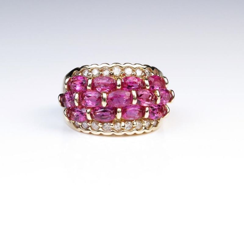 Lot 663 Stunning Pink Tourmaline & Diamond Ring