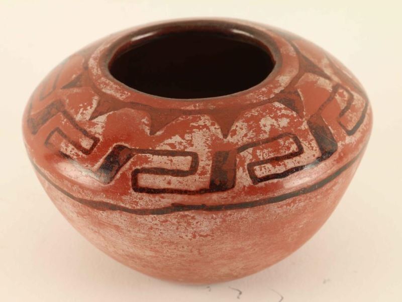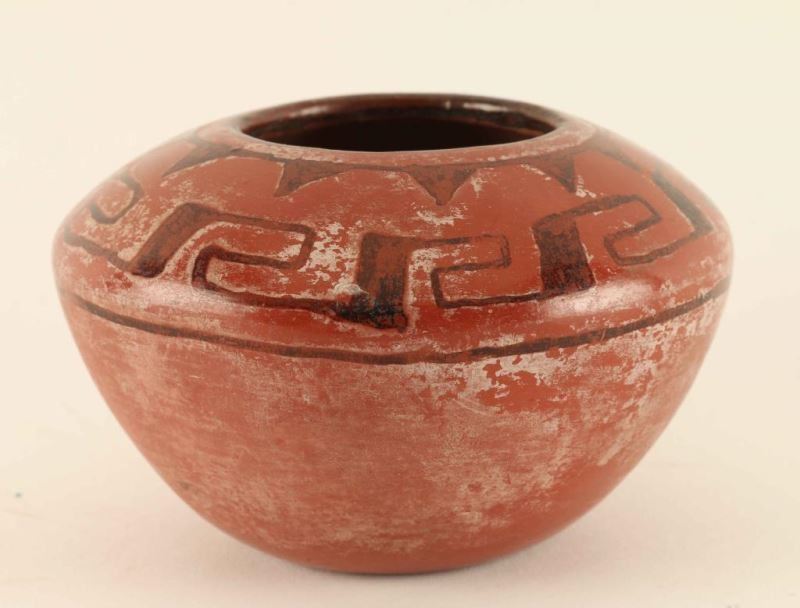With black geometric designs unsigned. Measures 3 1/2"x4"D