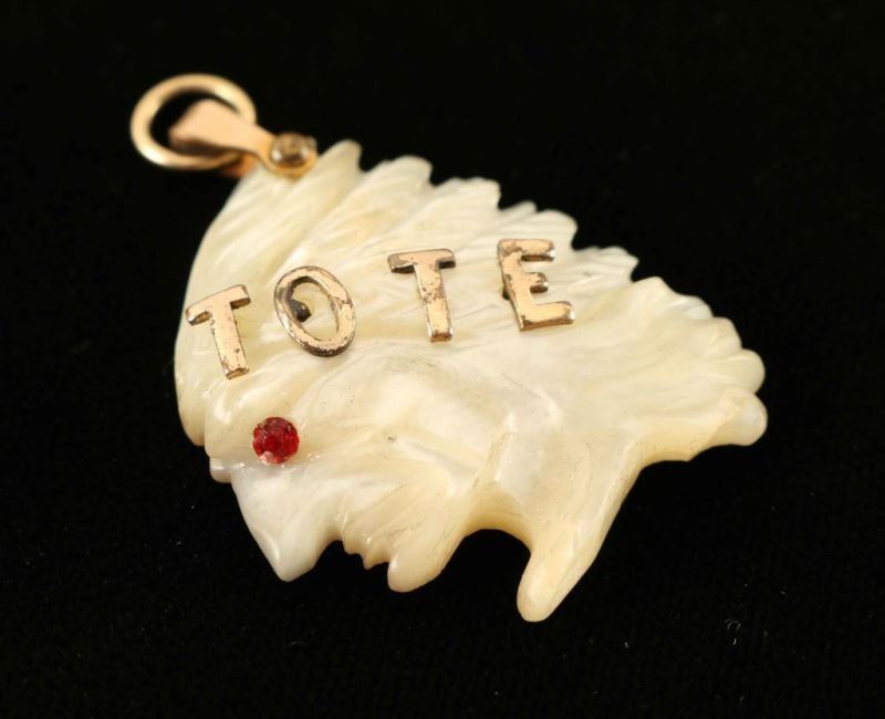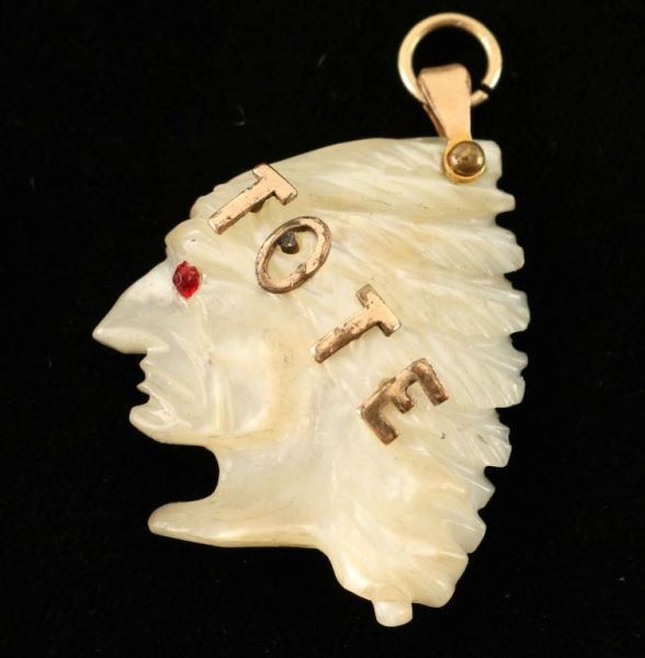 T.O.T.E means Totem of the eagle American secret society. The pendant is a carved indian head with red glass eye.