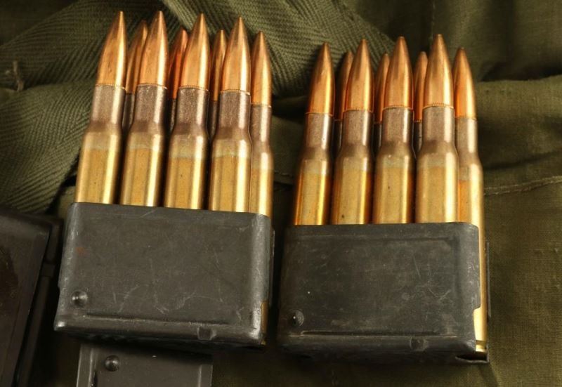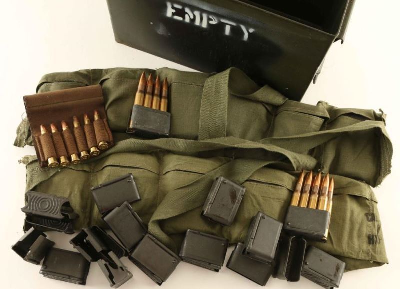 In 8Rd clips in bandoleers-88 Rds total. Also includes bag of empty clips.