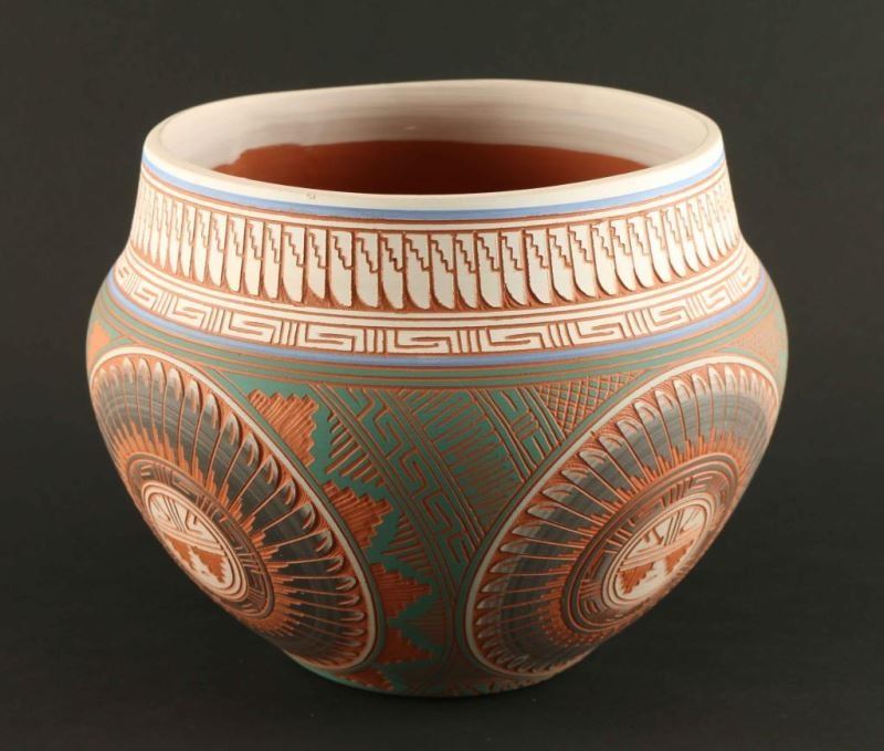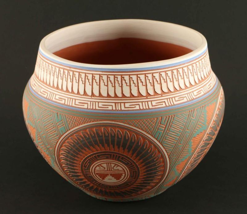 Lot 863 Colorful Incised Carved Pot