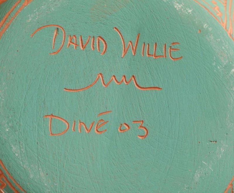 Sunface and feather motif signed David Willie measures 6 1/2" x 6 1/2".
