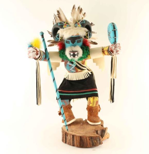 Signed V. Cayaditto, measures 25"x18" approx. Hand painted with fur, feather and leather accents.